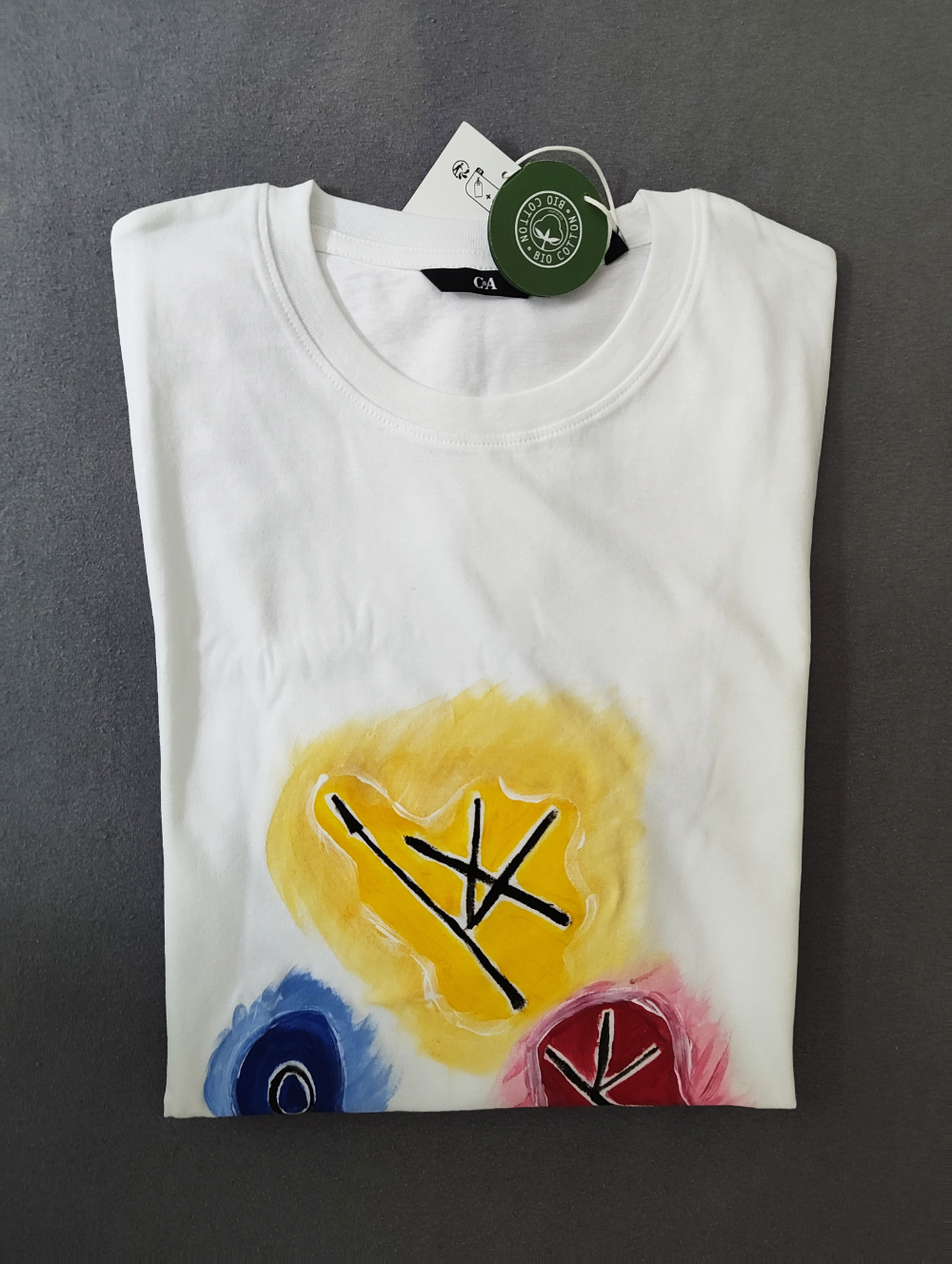 Handgefertigt in Wien, eignet sich dieses T-Shirt perfekt als besonderes Geschenk für Familie, Freunde oder kunstbegeisterte Menschen, die das Außergewöhnliche schätzen. Da jedes Stück in Hobby-Malerei handgefertigt ist, kann der Preis individuell vorgeschlagen werden.