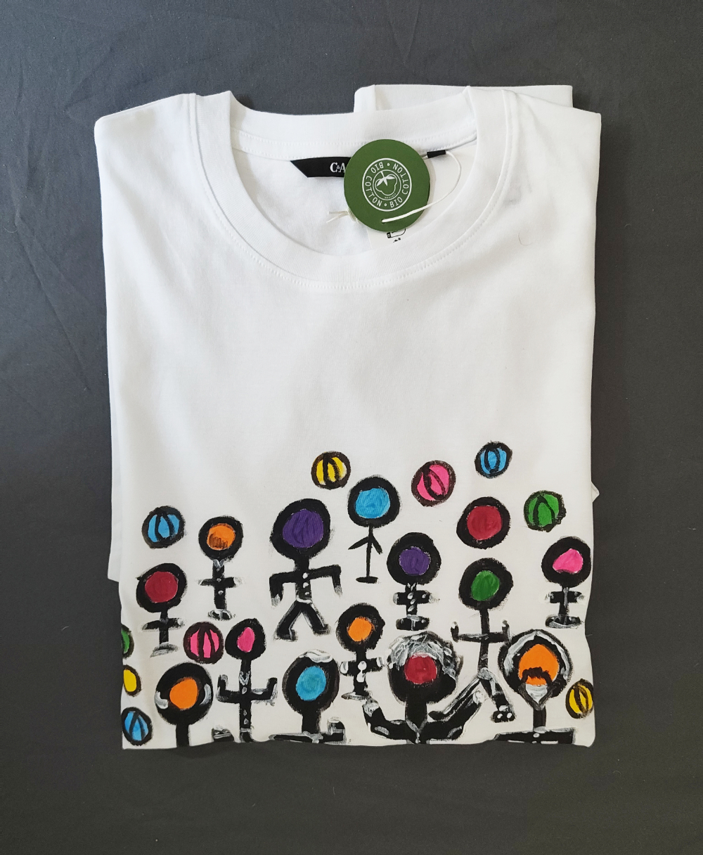 Jedes T-Shirt wird in Wien handgefertigt und ist das Ergebnis einer Hobby-Malerei, bei der nicht Perfektion, sondern Ausdruck, Gefühl und Einzigartigkeit im Vordergrund stehen. Kleine Abweichungen in Linienführung oder Farbauftrag sind bewusst Teil des künstlerischen Prozesses und unterstreichen den handgemachten Charakter jedes einzelnen Stücks.